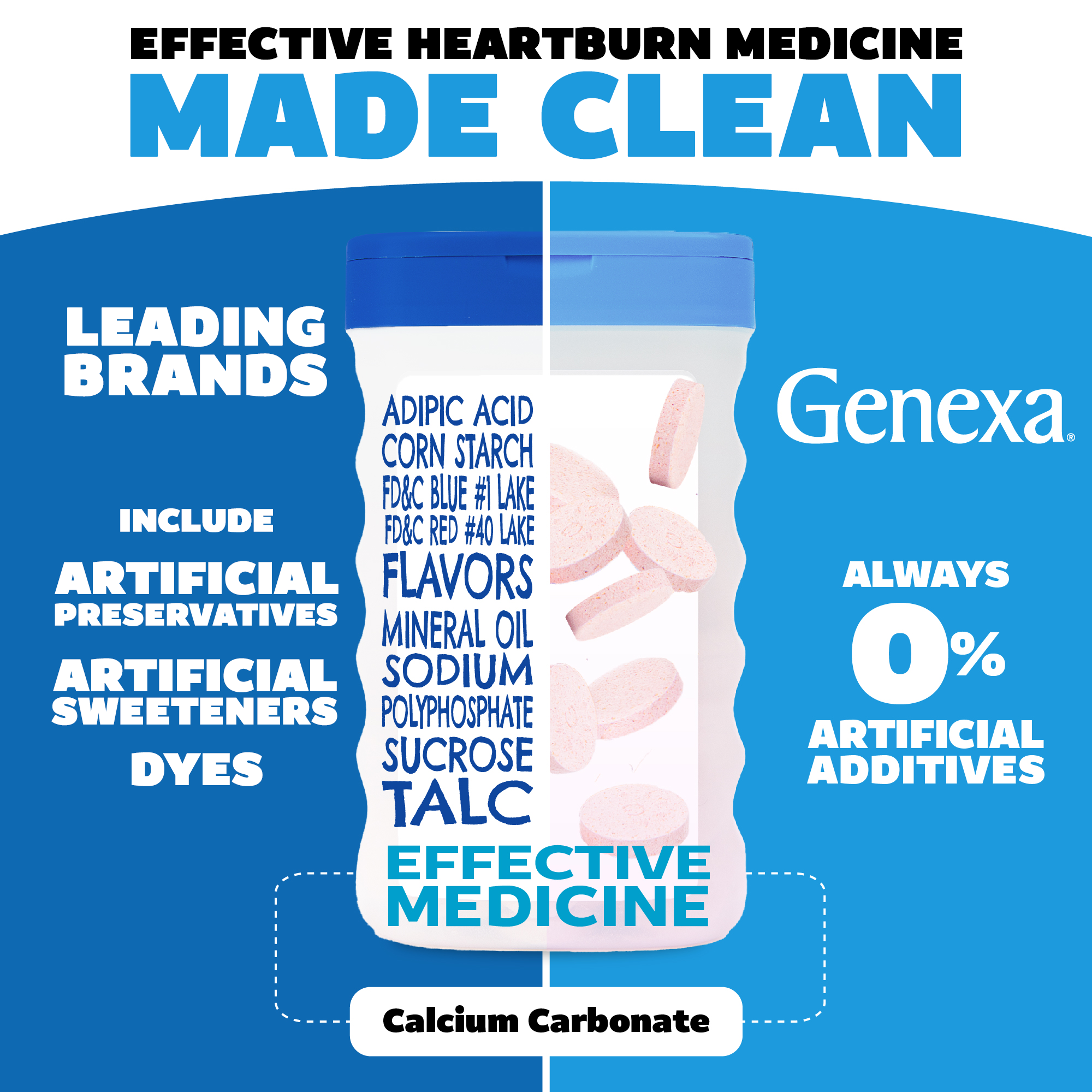 Genexa Antacid Maximum Strength is real medicine. made clean – providing maximum strength relief from heartburn. acid indigestion. sour stomach. and upset stomach associated with these symptoms.