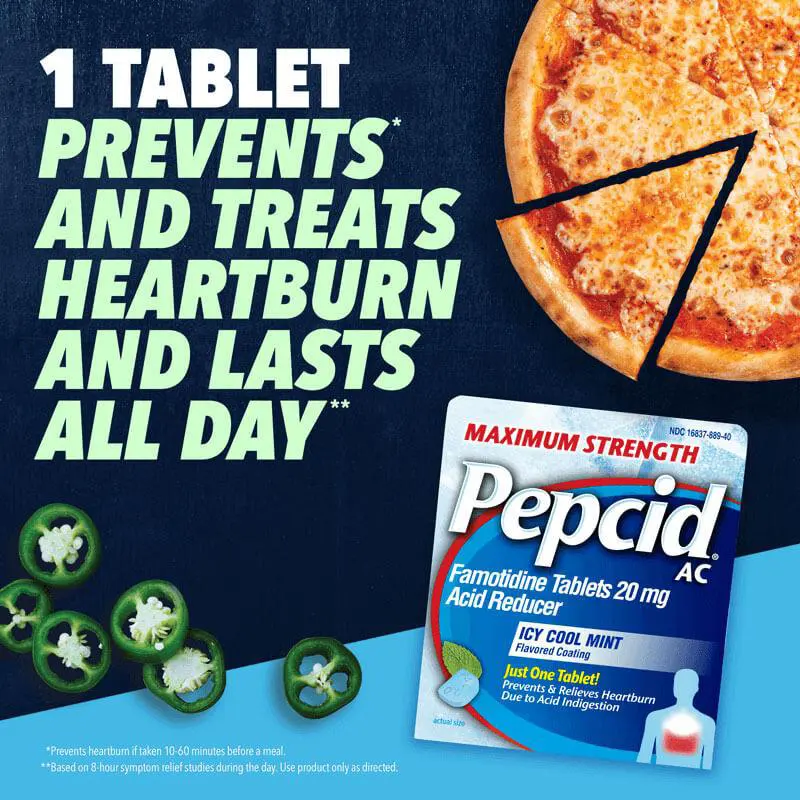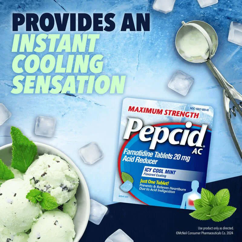 PEPCID AC® Maximum Strength Heartburn Relief & Acid Reducer, Icy Cool Mint, 20 mg Famotidine Tablets